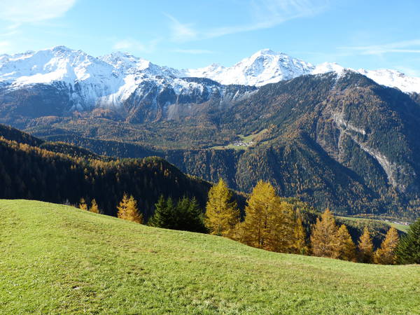 Eine ruhige Sonnenterrasse mit herrlichem Ausblick auf die Ötztaler- und Stubaier Alpen lädt ein zum gemütlichen Beisammensein. Auf einer Liegewiese mit Liegestühlen können sie relaxen, sich erholen und abschalten.
